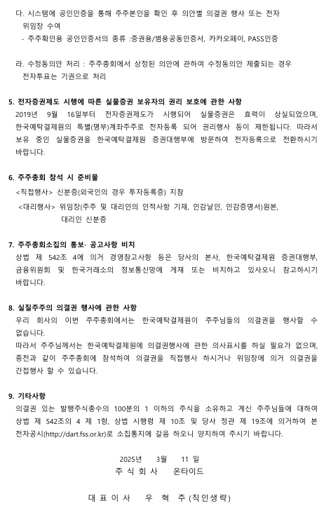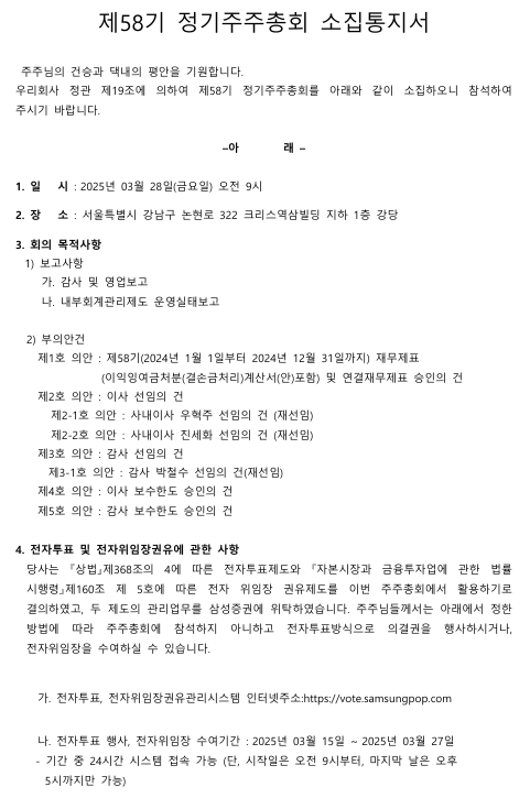 제58기 정기주주총회 개최를 위한 기준일 및 명의개서 정지공고